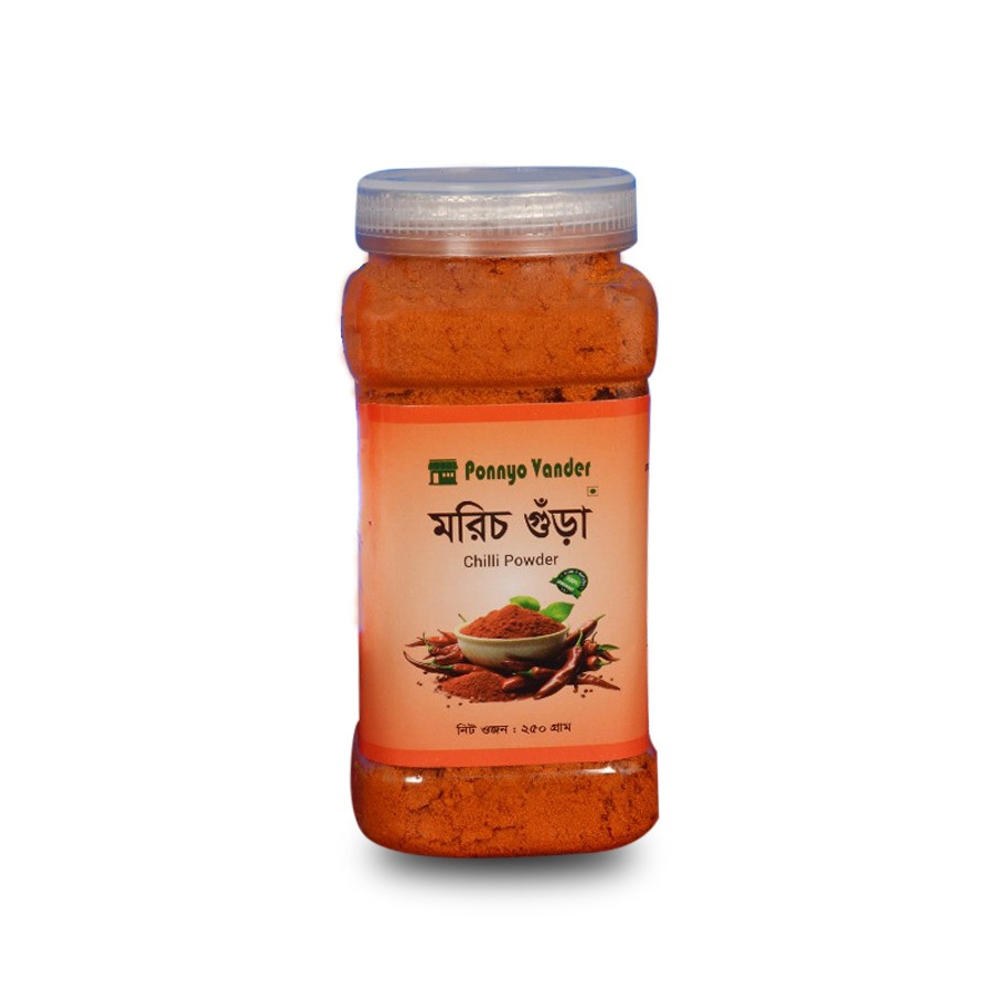 মরিচের গুঁড়া হলো শুকনো, নির্বাচিত লাল মরিচ থেকে তৈরি একটি জনপ্রিয় মসলা, যা রান্নায় ঝাঁজ, স্বাদ ও রং যোগ করে। এটি অ্যান্টিব্যাকটেরিয়াল, অ্যান্টিঅক্সিডেন্ট গুণের অধিকারী এবং হজমশক্তি বৃদ্ধিসহ রোগ প্রতিরোধ ক্ষমতা বাড়াতেও সাহায্য করে। স্বাস্থ্যকর মরিচের গুঁড়া খাঁটি, রাসায়নিক ও কৃত্রিম রংমুক্ত হয় এবং এটি দেশি ও विदेशी উভয় প্রকার মরিচ থেকেই তৈরি হতে পারে। |